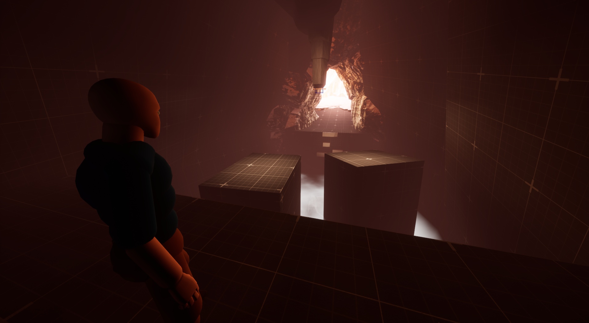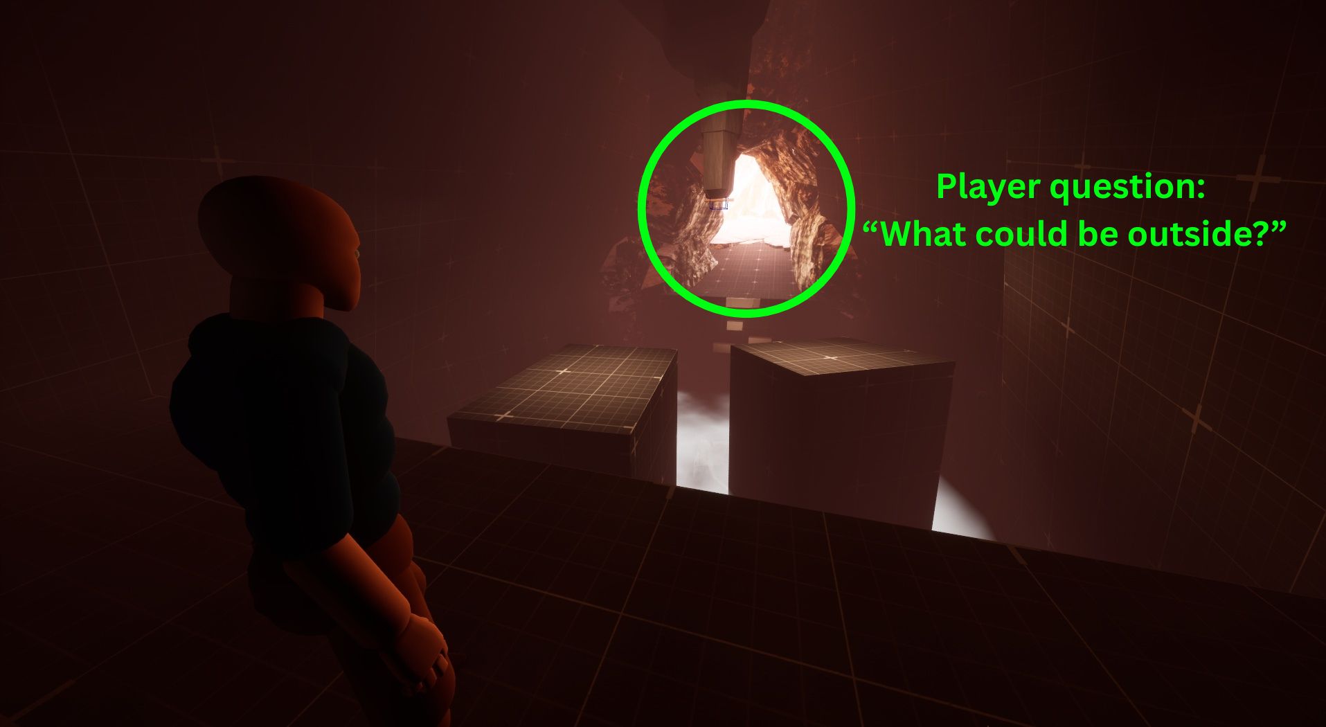 I gated this combat arena by requiring the player to do a crate-moving puzzle in order to climb out. This way, if the player attempted to skip past everything, they’d be likely killed by enemies before being able to progress.